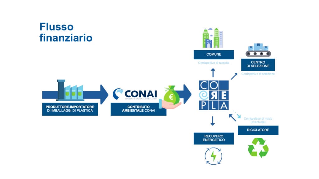 - Il Consorzio opera nell’ambito del sistema di gestione dei rifiuti di imballaggio coordinato da CONAI (Consorzio Nazionale Imballaggi), assicurando il ritiro degli imballaggi in plastica di competenza raccolti sul territorio italiano, il loro riciclo e recupero.